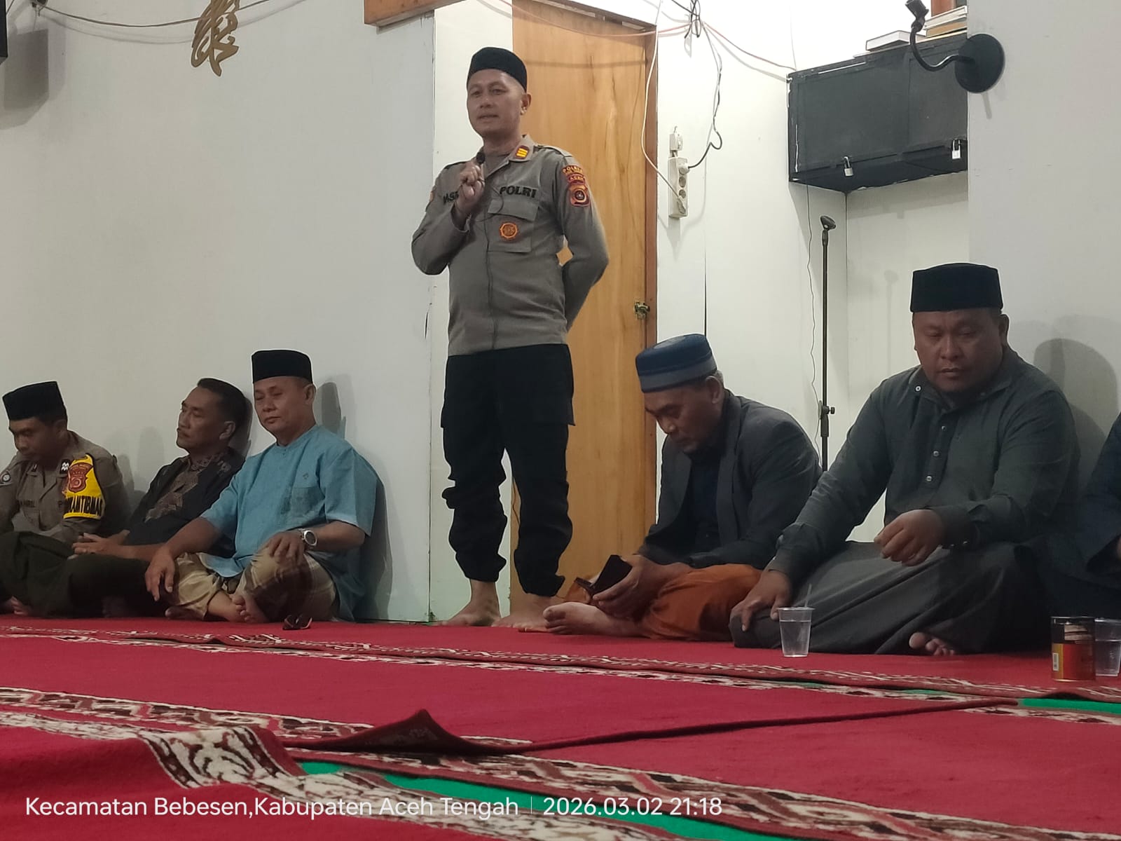 Dalam rangka mempererat silaturahmi sekaligus menyampaikan pesan keamanan dan ketertiban masyarakat (kamtibmas) di bulan suci Ramadan 1447 H/2026 M, Kapolsek Bebesen jajaran Polres Aceh Tengah melaksanakan Safari Ramadan, Senin (2/3/2026) malam.