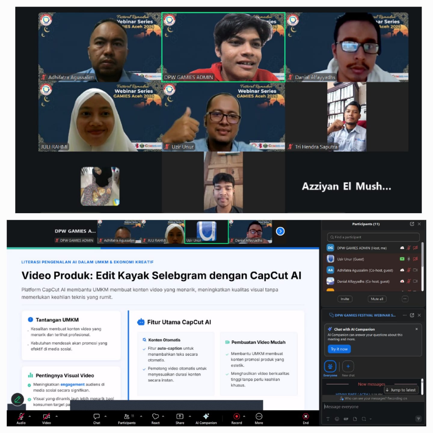 Melalui webinar ini, GAMIES Aceh terus berkomitmen mendorong literasi digital, inovasi, serta transformasi teknologi di kalangan pelaku UMKM dan ekonomi kreatif.