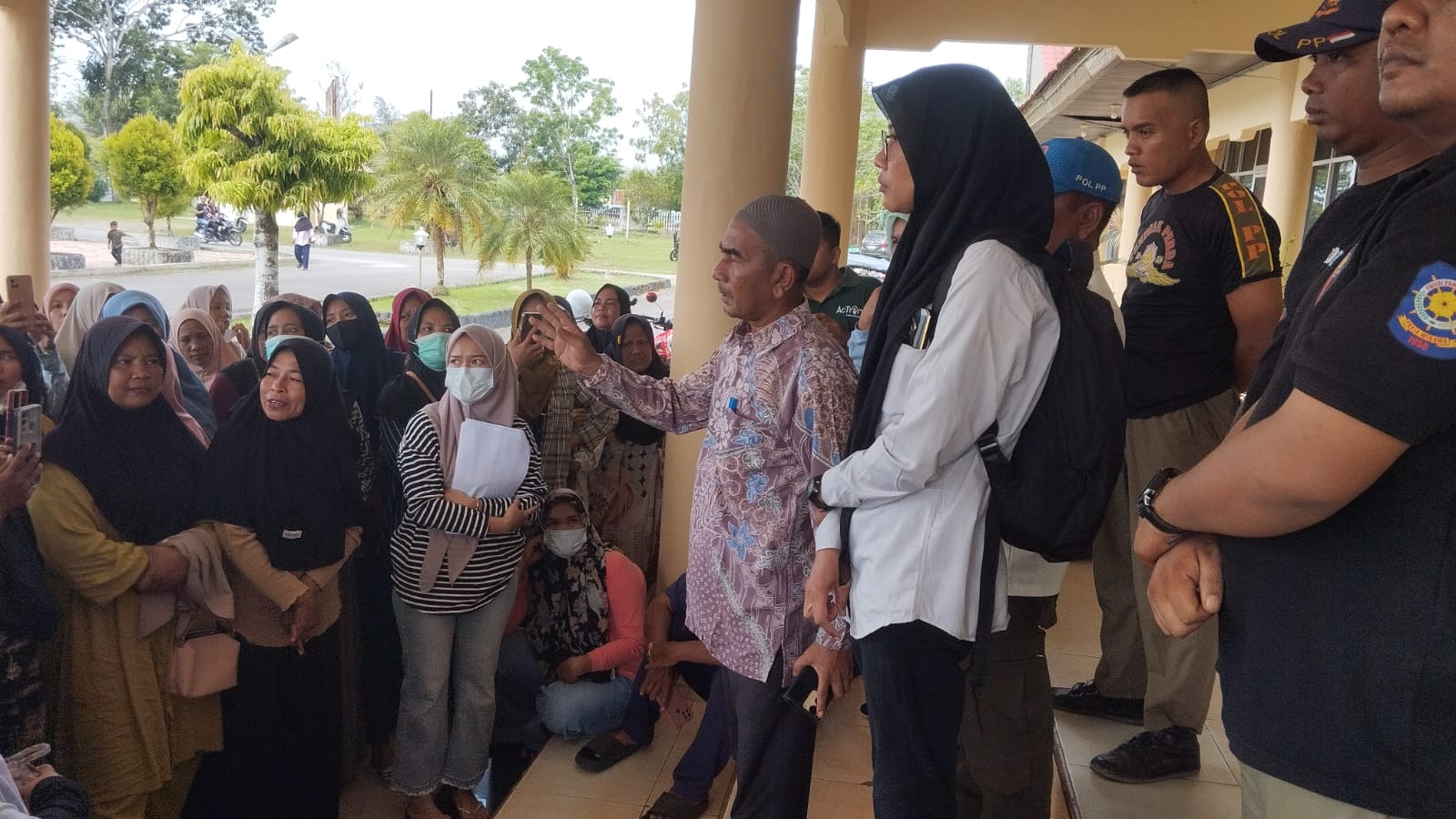 Setelah dari kantor BPBD, warga kemudian bergerak menuju Kantor Bupati Aceh Singkil. Di lokasi ini, massa diterima oleh Asisten II Bidang Ekonomi dan Pembangunan Setdakab Aceh Singkil, Faisal, bersama Petugas Pusdalops BPBD, Rosiana Kusuma Wardani.