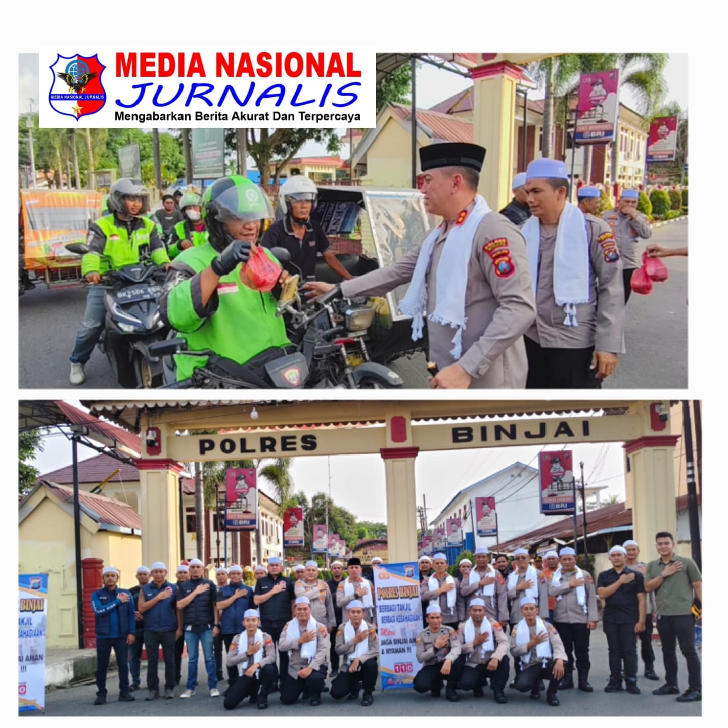 Kapolres Binjai AKBP Mirzal Maulana, S.I.K., S.H., M.M., M.H., berbagi Takjil bersama *Team Pelayanan Polisi Sorban Putih* di bulan Suci Ramadhan 1447 Hijriah, di depan Mapolres Binjai jalan sultan Hasanuddin No.1 Binjai, kota Binjai provinsi Sumatera Utara., Jumat (6/3/26).