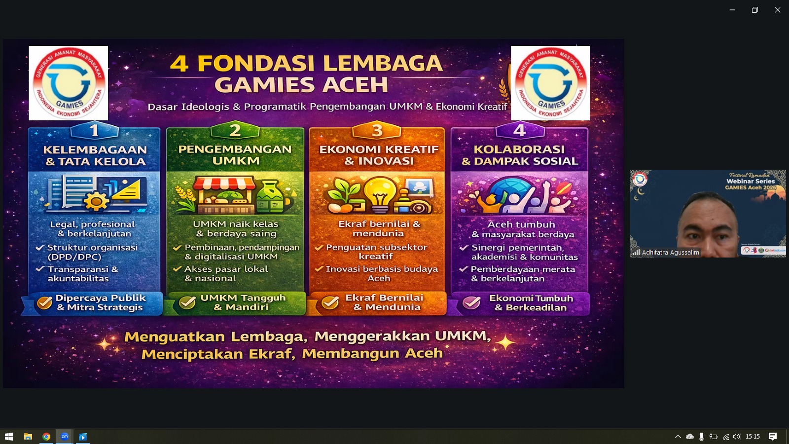 Menjawab tantangan tersebut, DPW GAMIES Provinsi Aceh kembali menggelar kegiatan edukatif melalui Festival Ramadhan Webinar Series GAMIES Aceh 2026 dengan tema “Strategi Penerapan Norma K3 pada Sektor Usaha Mikro Kecil Menengah (UMKM)”.