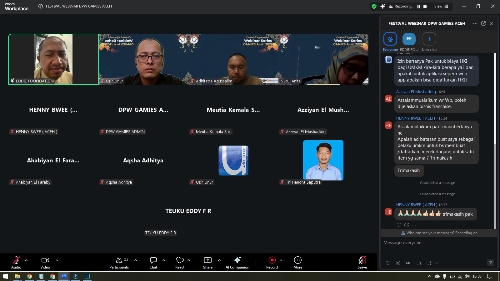 Webinar GAMIES Aceh bahas saatnya UMKM Melek Hak Kekayaan Intelektual (HKI)