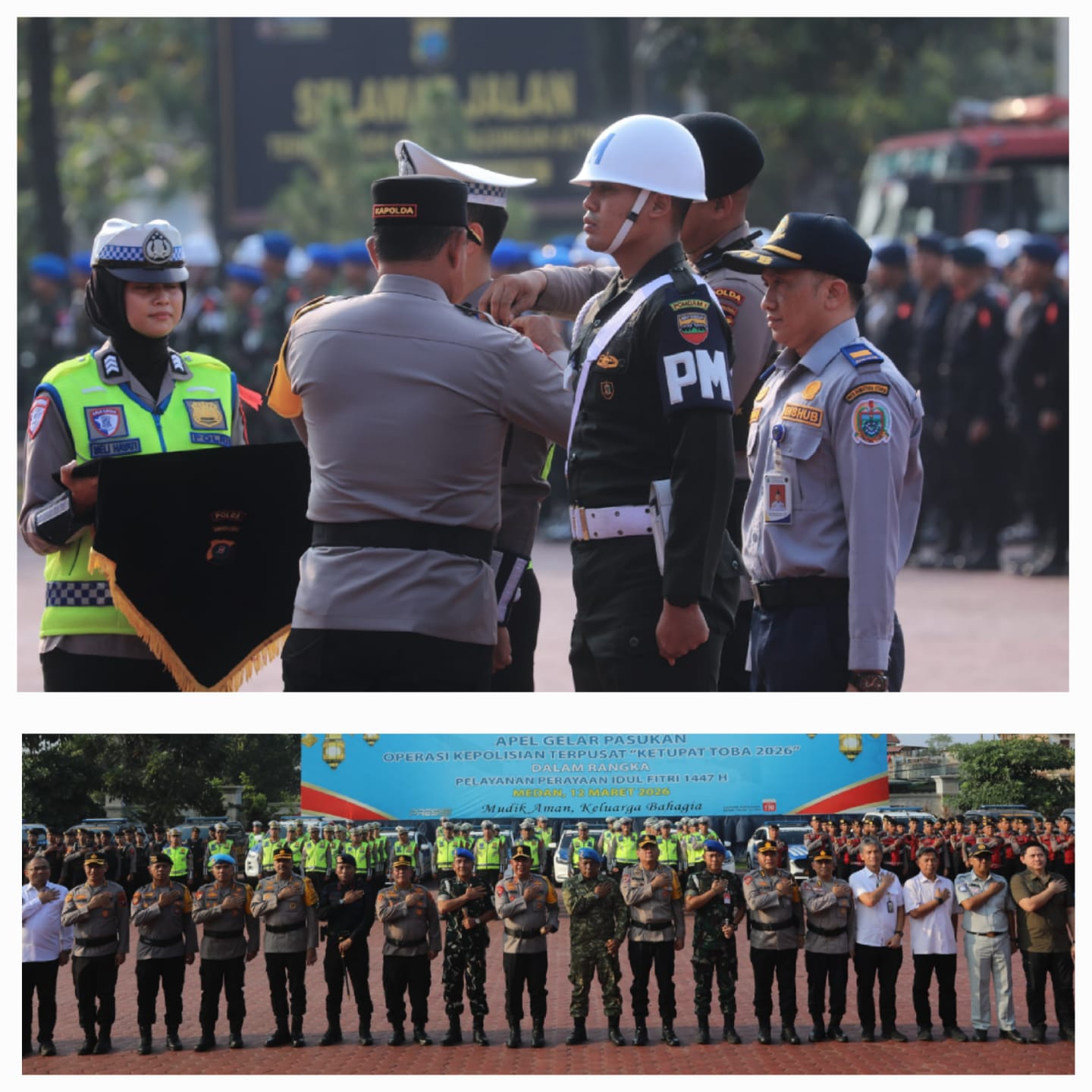 “Apel ini merupakan wujud komitmen bersama agar pelaksanaan mudik dan perayaan Idul Fitri dapat berjalan dengan aman, nyaman, tertib, dan lancar,” kata Kapolda Sumut saat membacakan amanat Kapolri.