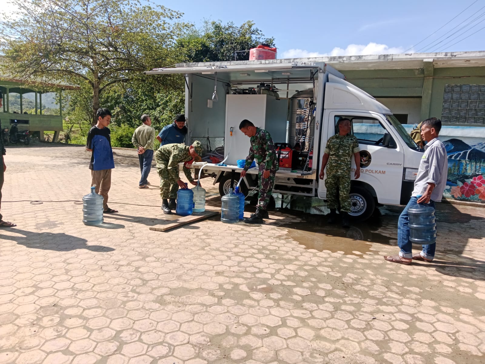 Dalam rangka membantu kebutuhan air bersih bagi masyarakat, Staf Logistik Kodim 0106/Aceh Tengah bersama Babinsa Koramil 03/Pegasing melaksanakan kegiatan penyaluran air Reverse Osmosis (RO) kepada masyarakat Desa Wih Nareh, Kecamatan Pegasing, Kabupaten Aceh Tengah, Jumat (13/03/2026).
