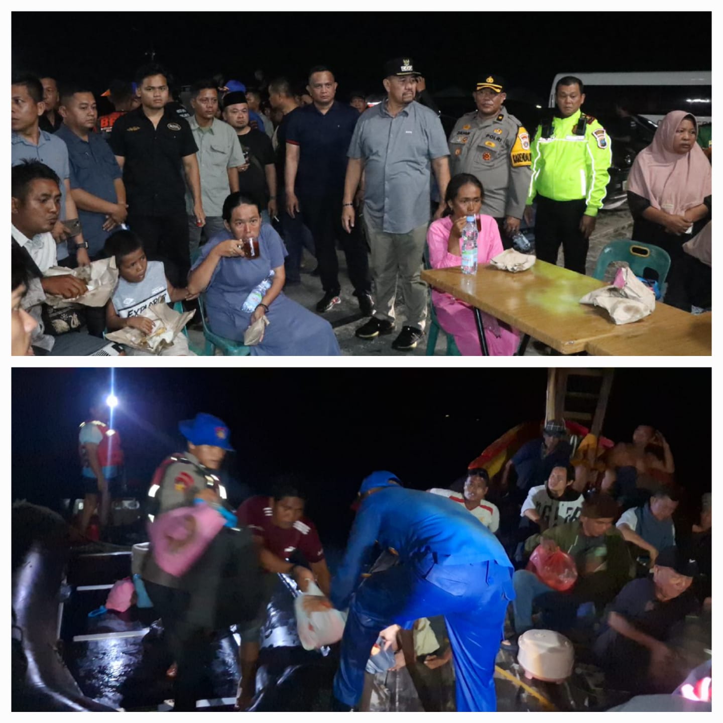Selanjutnya, pada pukul 20.30 WIB, personel Polairud melaksanakan evakuasi terhadap seluruh penumpang yang terdampar menggunakan dua unit kapal nelayan. Setelah perjalanan laut yang cukup panjang, sekira pukul 02.30 WIB dini hari, seluruh penumpang berhasil tiba dengan selamat di Pelabuhan Tanjung Tiram.