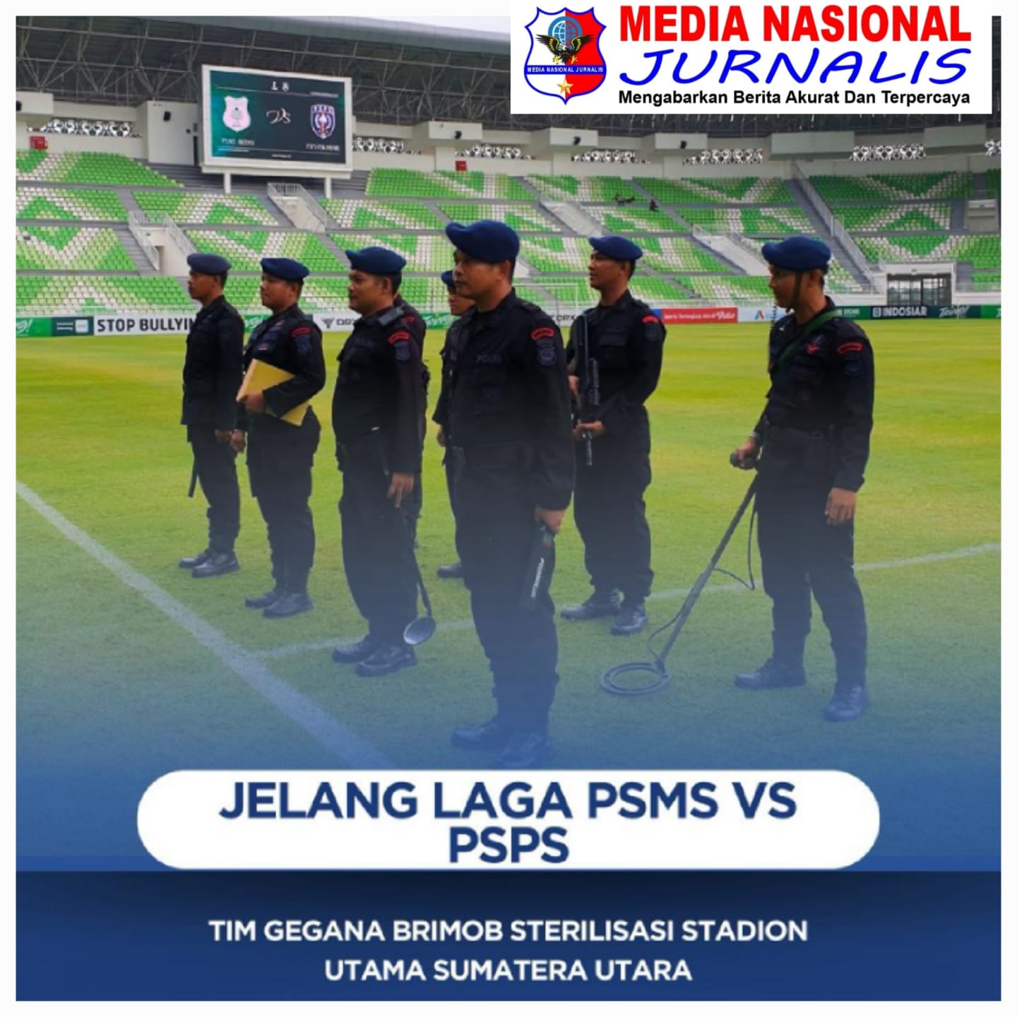 Untuk memastikan keamanan pelaksanaan pertandingan sepak bola antara PSMS dan PSPS, Tim Jibom dan Kimia Biologi Radioaktif (KBR) Detasemen Gegana Satuan Brimob Polda Sumatera Utara melaksanakan kegiatan sterilisasi di Stadion Utama Sumatera Utara, Sabtu (28/3/2026).