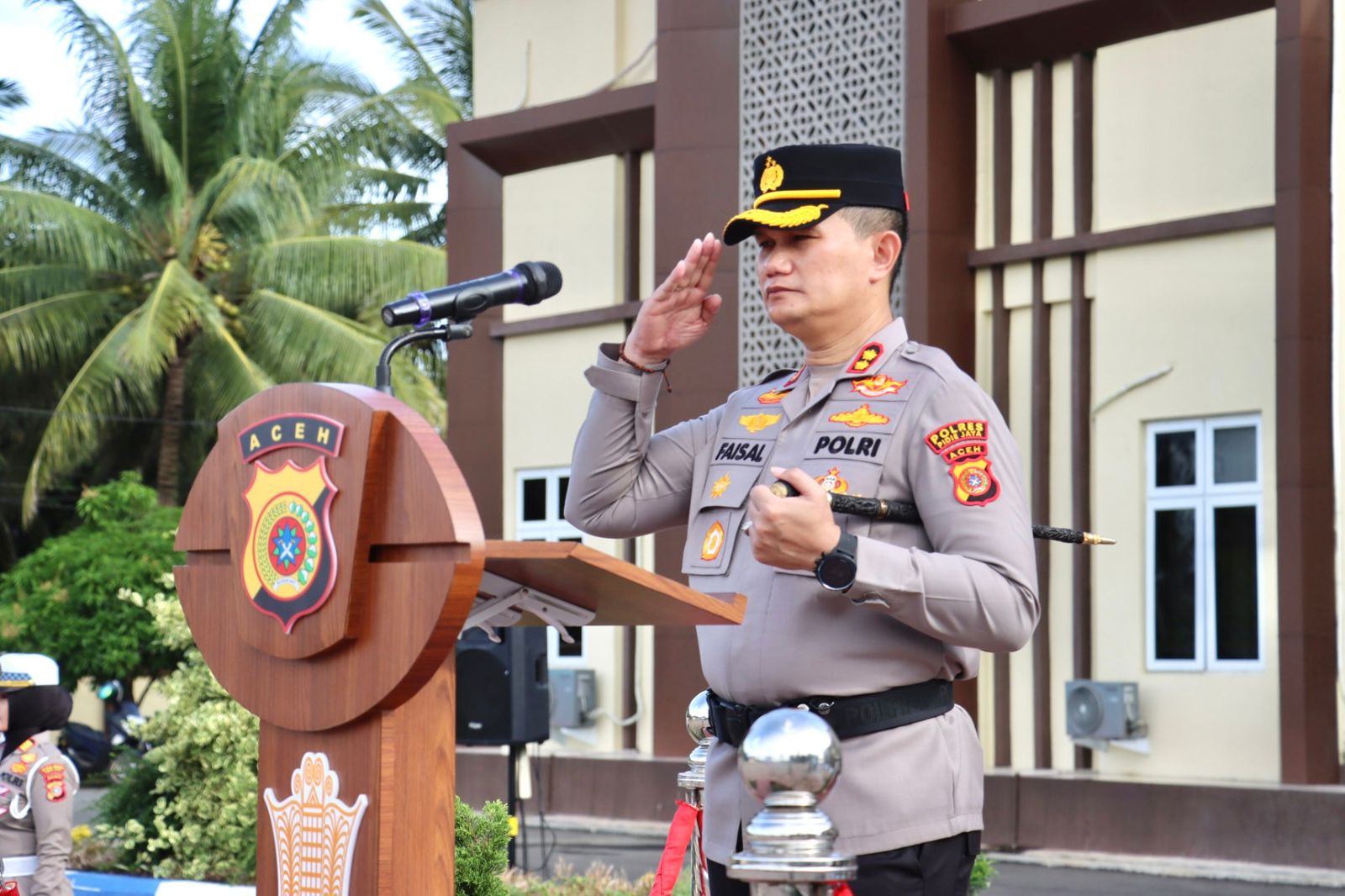Kapolres Pidie Jaya AKBP Ahmad Faisal Pasaribu memimpin apel pemantapan fungsi Pamapta SPKT sekaligus penyerahan kendaraan dinas operasional di Lapangan Apel Polres Pidie Jaya, Gampong Tuengkluet, Kecamatan Trienggadeng, Kabupaten Pidie Jaya, Selasa 7 April 2026.