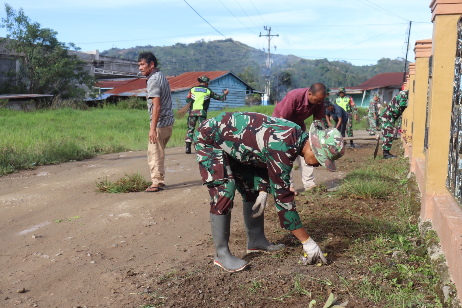 “Melalui kegiatan gotong royong ini, kita ingin menumbuhkan semangat kebersamaan serta kepedulian terhadap lingkungan. TNI akan selalu hadir di tengah masyarakat untuk membantu dan menjadi solusi atas kesulitan warga,” ujarnya.