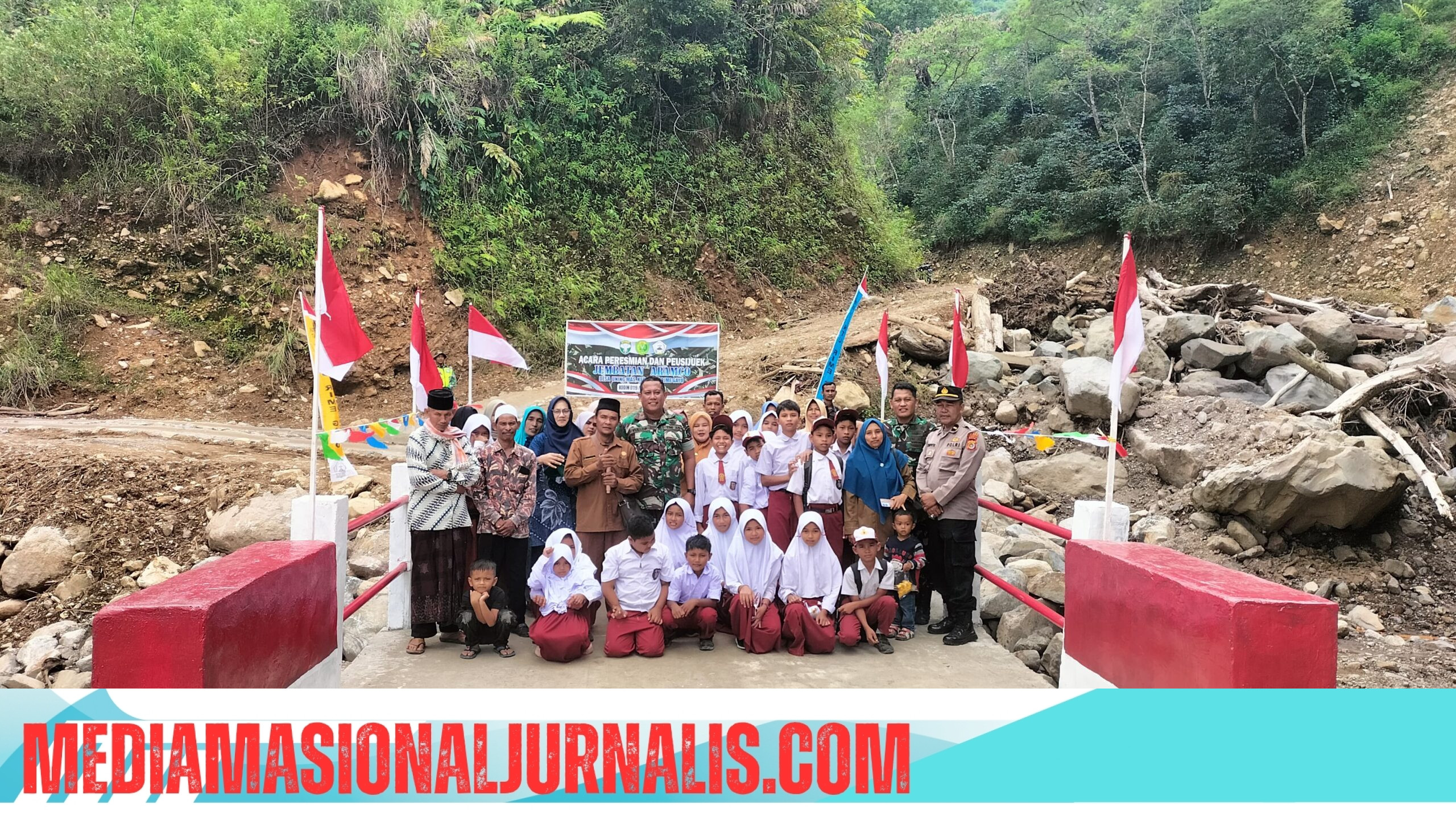 Acara peusejuk (tepung tawar) sekaligus peresmian Jembatan Aramco yang terletak di Desa Uning Mas, Kecamatan Pintu Rime Gayo, Kabupaten Bener Meriah, berlangsung dengan penuh khidmat pada Senin (27/04/2026).